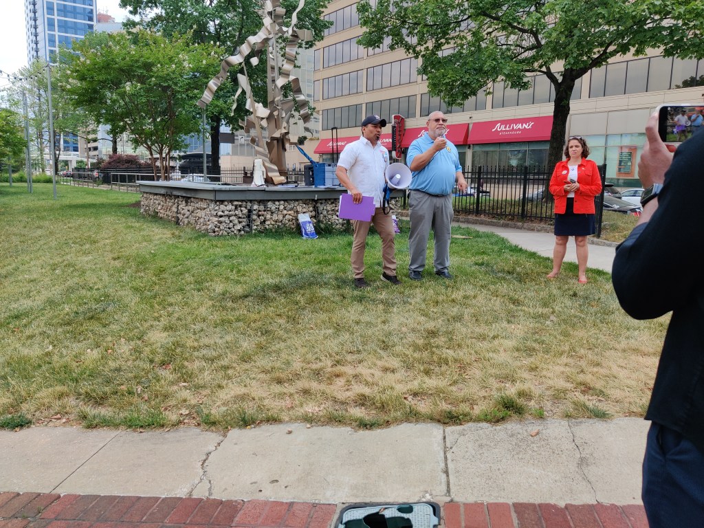 The gray clouds that had been hanging over the city on the morning of June 16th were just beginning to clear as the crowd of about fifty people coalesced in downtown Baltimore’s McKeldin Square for SEIU 32BJ’s Justice for Janitors rally and march on Friday afternoon. Horns honked and sirens buzzed by as attendees listened to a series of speakers addressing the crowd through a megaphone, including rank and file workers, union staff, and elected officials — all calling for fair wages and working conditions in the property service industry.